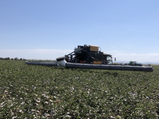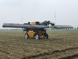 该项目主要针对我国高秆作物施药技术落后、装备智能化水平低的问题,研发了3WPZ-1800G型的高地隙自走式喷雾机,突破了喷杆自平衡、喷雾机底盘减振以及底盘驱动防滑等关键技术。主要创新点:1、设计了一种喷杆自动平衡机构,利用喷杆自身重力使喷杆与地面自动保持水平,并通过摩擦阻尼装置调整喷杆自动平衡的灵活度;2、设计了“单泵+四马达”液压驱动系统,根据轮边马达的转速差,通过分流集流阀调整液压油流量分配,实现直线行走、转向以及行走防滑。3、设计了四轮独立式气液组合悬架,通过蓄能器和空气弹簧组合吸收不同频率的振动。目前该项目发表论文5篇,申请专利10项,研发的高地隙自走式喷雾机已在新疆、甘肃、河北及东北进行了大面积应用,作业面积1.5万亩。