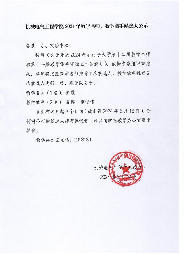 春满四合院 2024年教学名师、教学能手候选人公示