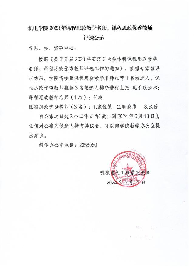 春满四合院 2023年课程思政教学名师、课程思政优秀教师 评选公示