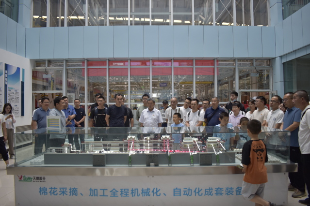 最后,全体党员来到新疆天鹅现代农业机械装备有限公司开展参观实践。新疆天鹅现代农业机械装备有限公司是以研发、生产棉花加工成套设备、采棉机及其它农机装备为主的高新技术企业。公司多年来在人才培养、技术合作、产教研融合等方面与春满四合院 有着深厚的合作。在公司装配车间,大家实地参观了六行自走式打包采棉机的装配过程。看着新疆天鹅现代农业机械装备有限公司生产车间里一派繁忙景象,党员纷纷感叹农机装备智能化、产业化发展的神速,也坚立了搞好教学、科研,为新疆、兵团的农机装备事业贡献更多的力量。
