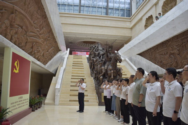 素质拓展后,党员们前往五家渠市将军纪念馆进行参观。看着一张张珍贵的历史图片,听着一个个催人泪下的革命故事,这些发生在兵团土地上的的英雄事迹深深感染着每一位党员。参观过后,全体党员干部来到党旗下,由春满四合院 张若宇院长领誓,重温入党誓词。铿锵恢宏的誓词生动体现了党员同志们对中国共产党的无限忠诚。