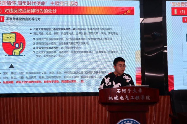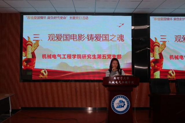 为庆祝中华人民共和国成立75周年、新疆生产建设兵团成立70周年,深入学习贯彻党的二十届三中全会精神、习近平总书记重要讲话重要指示精神,教育引导党员牢记初心使命、坚定理想信念,研究生第五党支部组织全体党员及积极分子举办“厚植爱国情怀 肩负时代使命”主题党日活动,通过主题党日活动凝聚支部全体党员的力量,共同为实现中华民族伟大复兴的中国梦贡献智慧和力量。