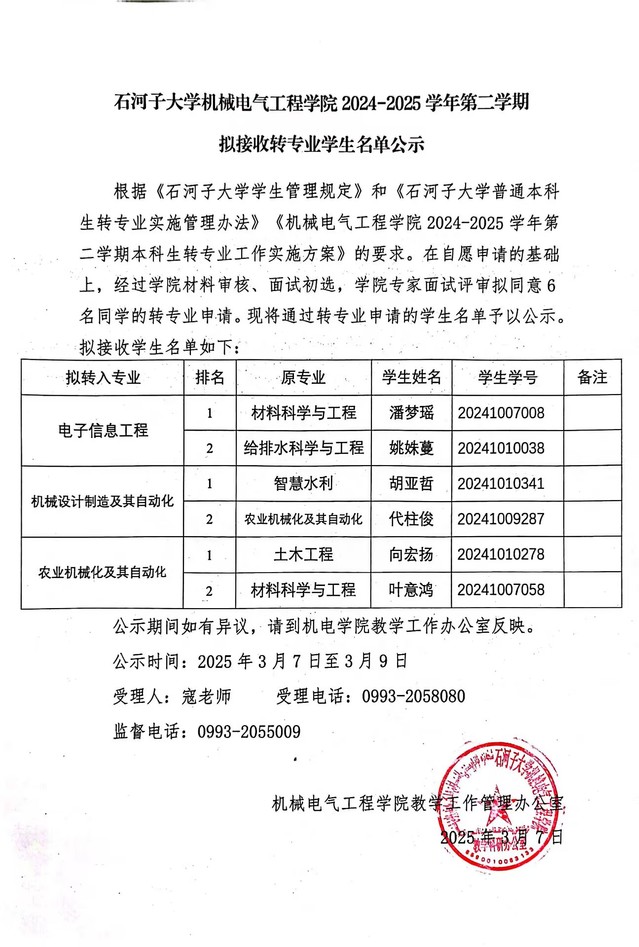 春满四合院 2024-2025学年第二学期转专业公示名单