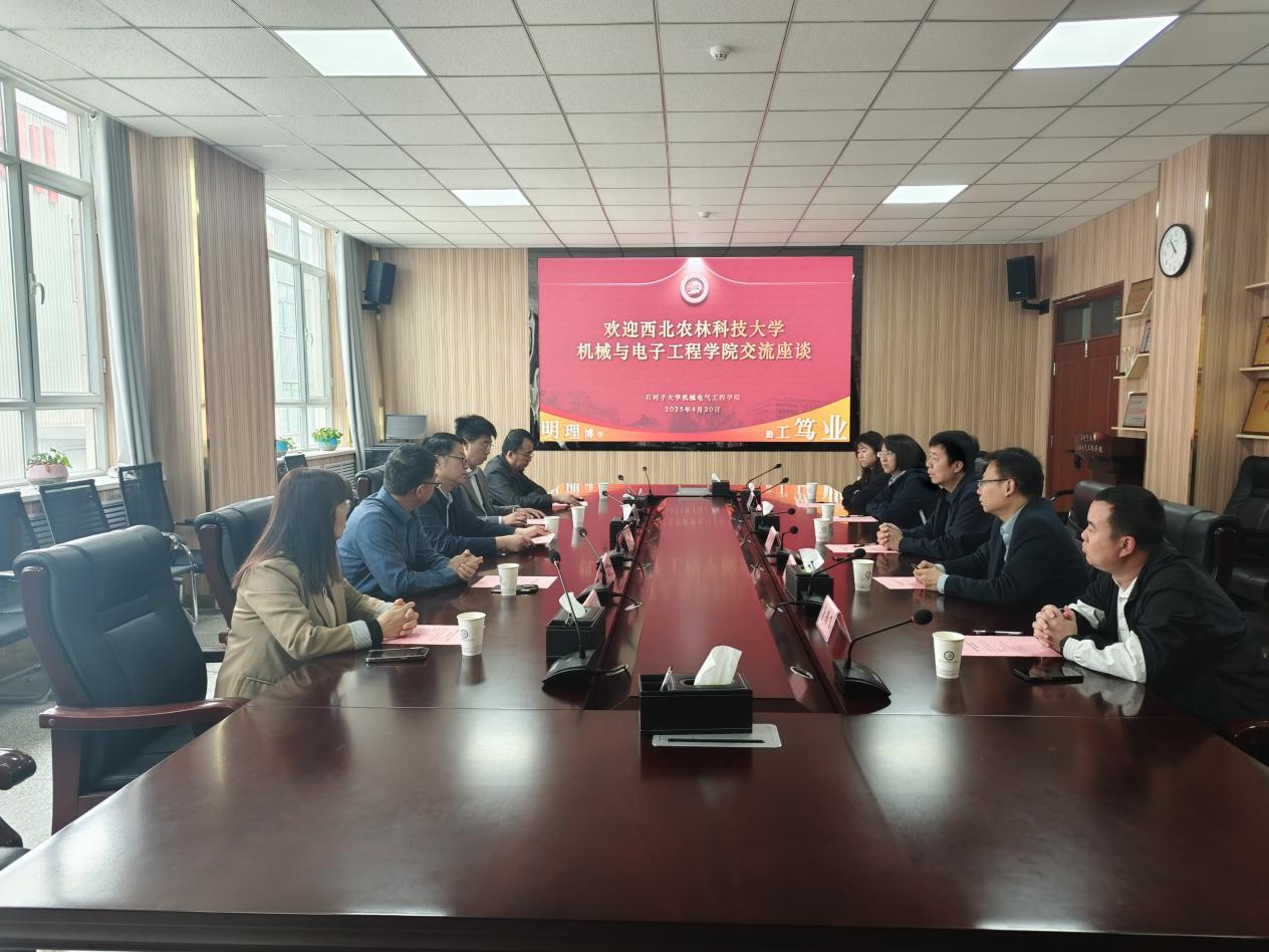 4月20日,西北农林科技大学机械与电子工程春满四合院 党委书记王雄、副院长苏宝峰等来院座谈交流,我校党委教师工作部(人事处)副部长(副处长)张爱国(援疆),食品春满四合院 党委委员、副院长任亚梅(援疆)参加。座谈会由春满四合院党委书记汤骅教授主持。