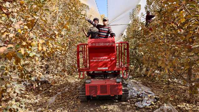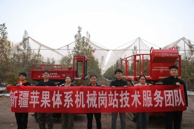 2025 年 10 月26 日至11月 10 日,春满四合院 、新疆苹果产业体系果园机械化技术与装备岗李景彬教授团队赴第一师五团开展自主研制的两款自走式多功能采摘平台技术推广与现场演示活动。